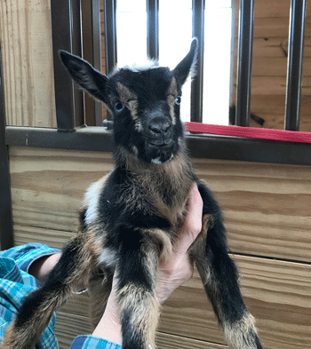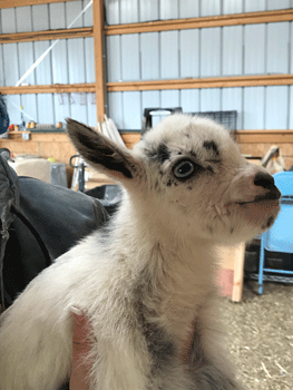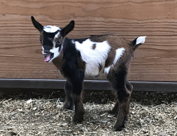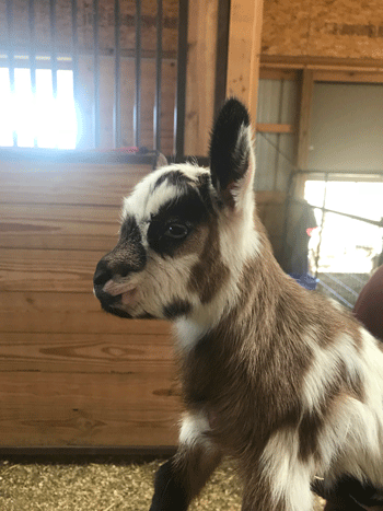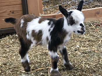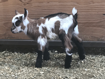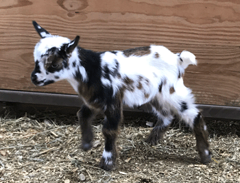 #K16 Born 4-26-18 Black with White Doeling Brown Eyes