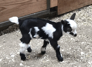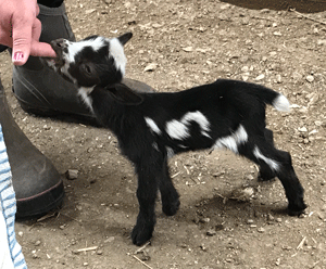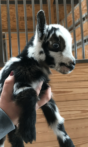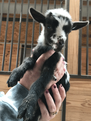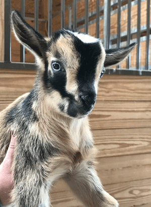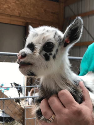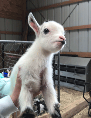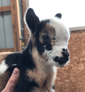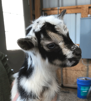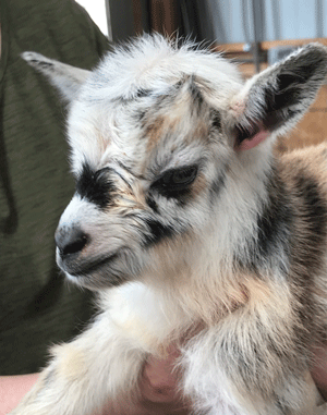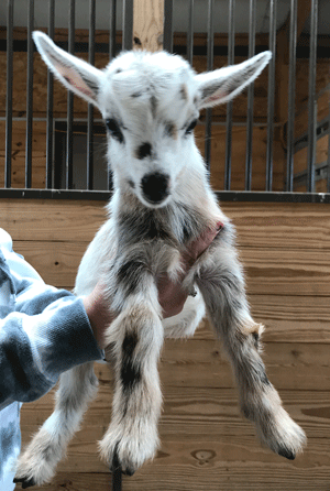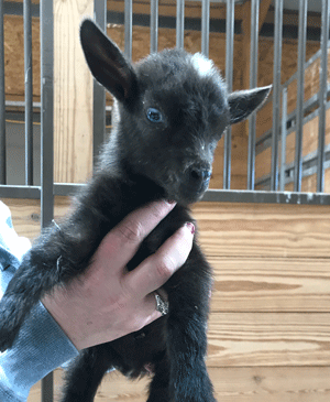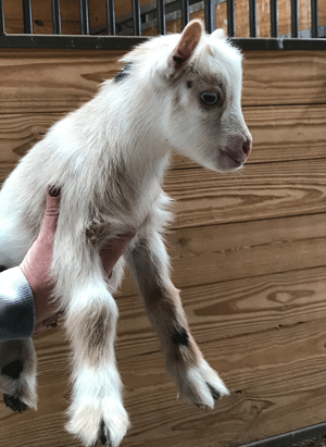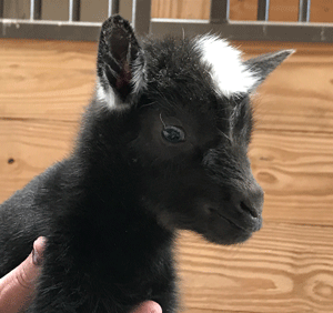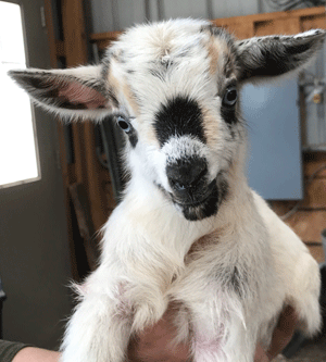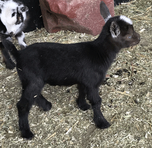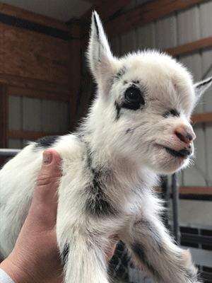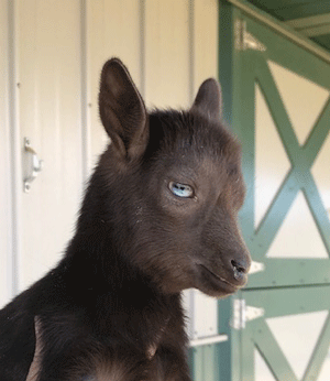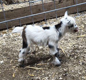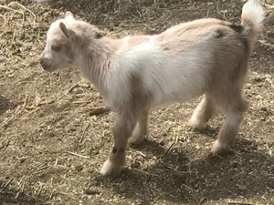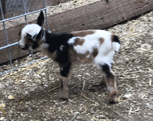 #M14 Born 4-22-20 Chocolate with White Poll and Frosted Ears Doeling $300